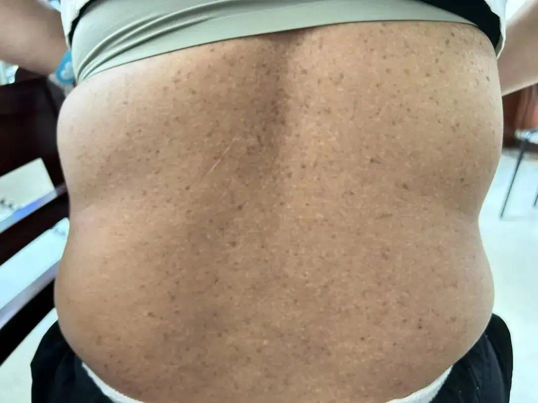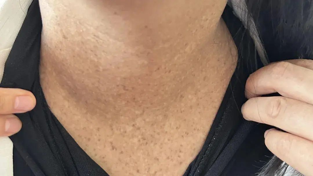一年前,陈女士在照镜子时偶然发现自己的脖子似乎“变黑了”,她以为是没做好防晒,起初并没有放在心上。可渐渐地,陈女士发现,自己不仅脖子越来越黑,长出了黑斑,而且这黑斑还蔓延到了四肢、躯干,就连手掌、脚底也莫名长出粗糙硬茧,表面布满“谷粒状”的小疙瘩,稍微活动剧烈一点,就感觉气短、全身乏力,她这才赶到浙江省中西医结合医院(杭州市红十字会医院)就诊。