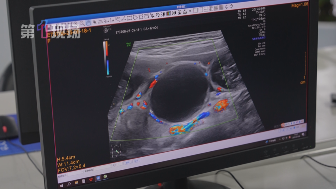 光明区人民医院超声医学科副主任医师李洲介绍,“水宝宝”在肠道长时间停留的话,会引起肠管的坏死,这是一个很严重的并发症。肠管黑色的部分,就是“水宝宝”膨胀堵在这里形成的,可以看到这个“水宝宝”已经泡得很大了。