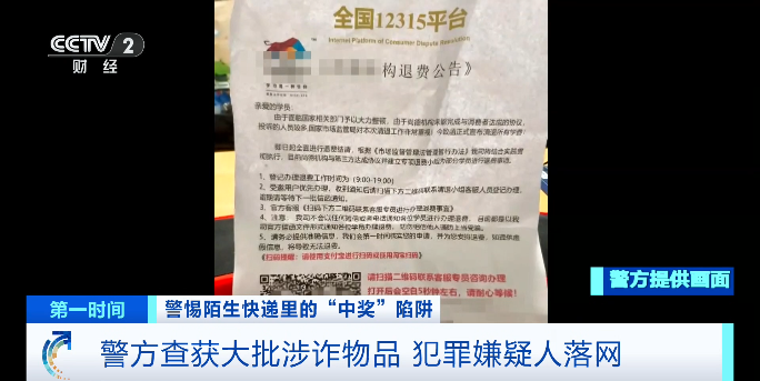 诈骗分子假借“免费领取好礼”“幸运抽中特等奖”等名义,以快递盲盒形式向目标人群投递伪造包裹。