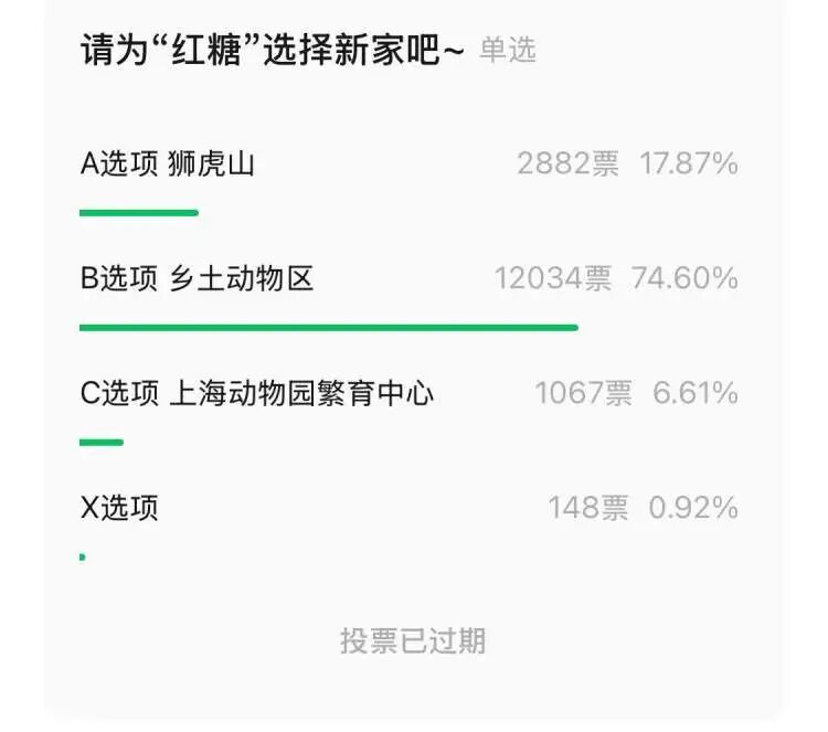 此前,上海动物园宣布,由于“红糖”目前所在的中型猛兽展区即将进行全面改建,因此,“红糖”不得不搬去其他展区。对于“红糖”新家有3个候选方案,分别是狮虎山、乡土动物区以及上海动物园繁育中心食肉动物区,请游客来投票。