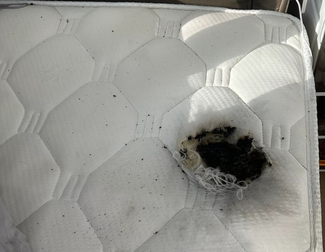王女士说,由于自己当时在家,发现的也及时,除了烧毁的充电宝,再就是家里的床垫和被褥烧坏了一部分。
