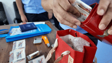 经民警和蔡先生妻子共同拆包查验