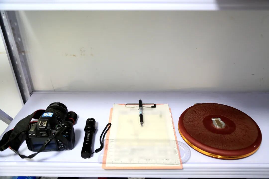 ▲图为郑亮最后一次出警携带的事故勘查工具。
