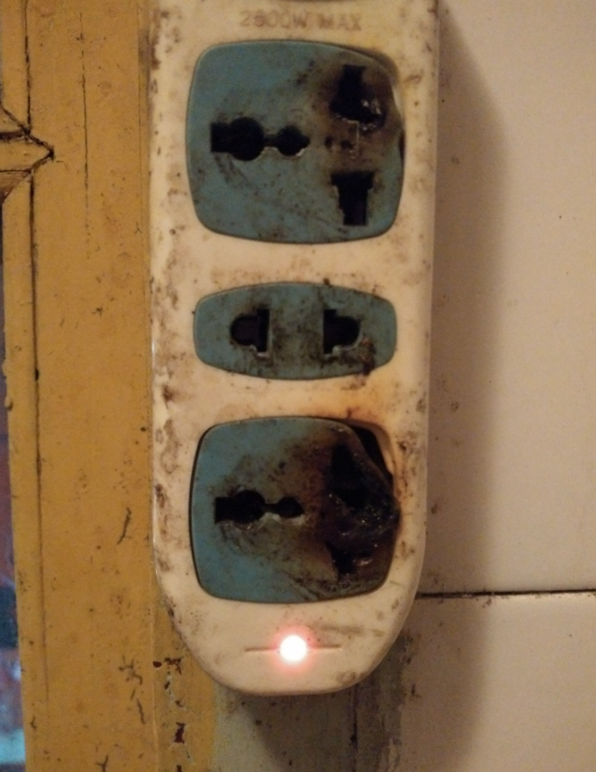 早在2010年,国家就已明令禁止生产这类插线板 ,问题就出在设计上:为了适配不同插头,插片与电器插头的接触面积特别小,通电时容易产生电弧和高温,引发火灾的风险比普通插线板高出好几倍。