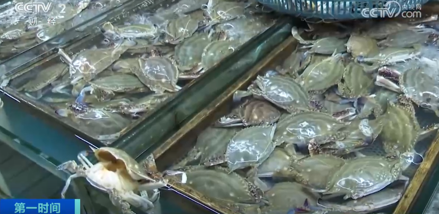 在青岛城阳海鲜商城内记者看到,梭子蟹、南美白对虾、刀鱼、黄花鱼等各类海鲜整齐码放,不少市民穿梭在摊位间进行挑选,很多人都是冲着节后降价而来。