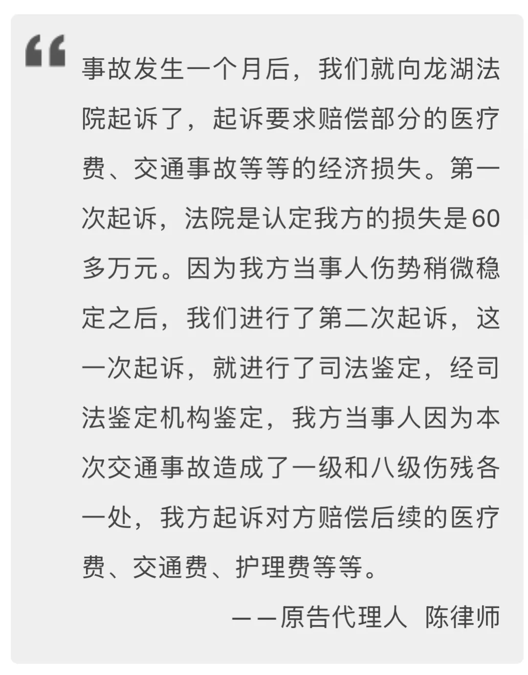 原告代理人陈律师表示,车主驾车经过泰山南路路段时,随意在路边停车,没有停到指定的停车位,然后没有观察后方是否有行人或者车辆,就放任乘客打开车门。