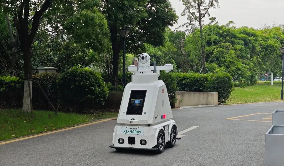 在苏州市实验小学校的校园内,一台智能安防巡检机器人与人工保安“交班”,执行校园巡逻任务。这台机器人能快速分析人流量,精准识别陌生人群和尾随访客,在夜间凭借热成像功能可以发现肉眼难以察觉的异常情况,并迅速与后台及物业系统联动,及时处理。