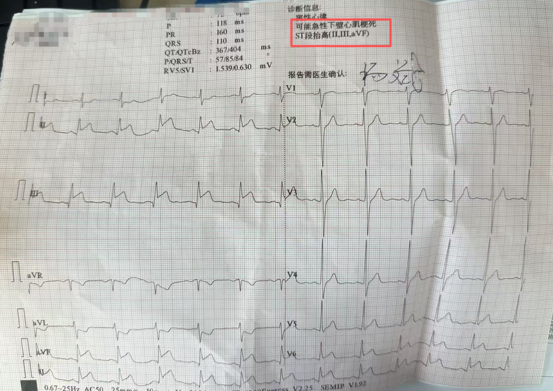 ▲张先生心电图显示ST段抬高