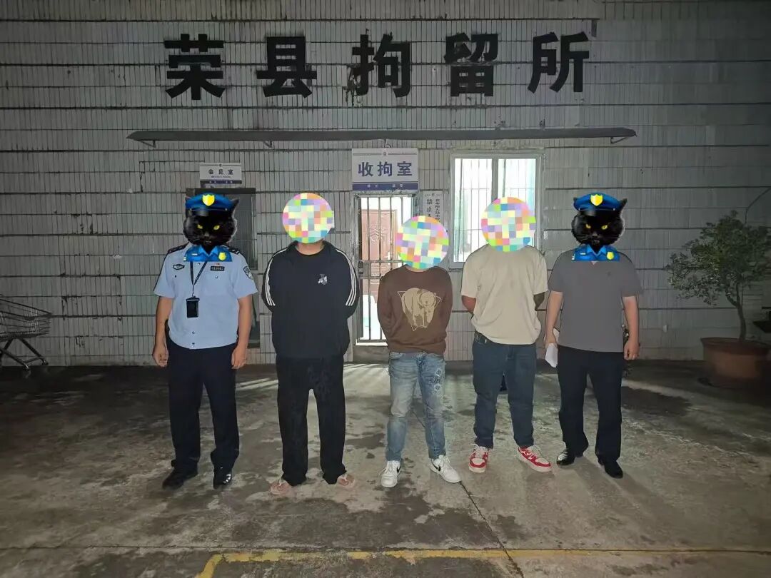 法网恢恢,疏而不漏。荣县公安局禁毒大队根据掌握的线索,精准出击,在荣县某宾馆房间内将涉案人员陈某(男,24岁)、胡某(男,21岁)、曹某(男,38岁)、毕某某(男,20岁)一举抓获。