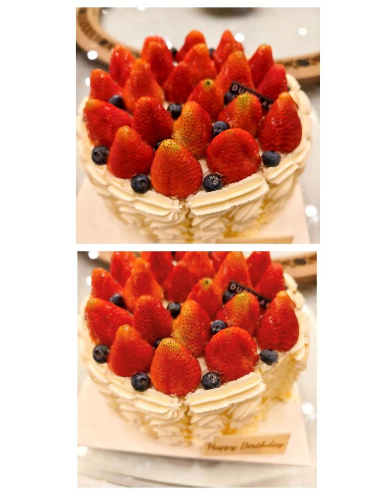 △人工智能修改伪造的网购蛋糕磕碰破损图片,原图和伪造图对比