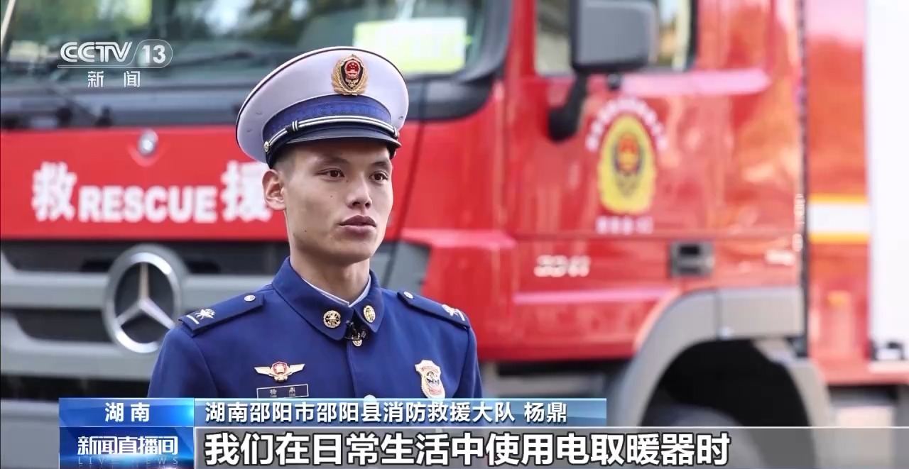 湖南邵阳市邵阳县消防救援大队 杨鼎:我们在日常生活中使用电取暖器时,不要跟沙发等棉织物品放得太近,更不要在电取暖器上烘烤衣物,这样很容易引燃可燃物从而引发火灾。例如打火机、花露水、空气清新剂等一些易爆品更不要离电暖器太近,以免发生爆炸。当人员离开后,应断开取暖设备电源开关,防止长时间使用电器过热引燃周围物品发生意外。