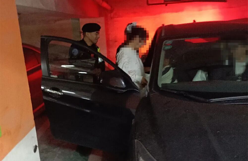 近日,良渚新城派出所接到热心群众报警,称在某商场地下车库内,一名儿童被独自留在私家车内。附近巡逻的轻装PTU队员接到指令后,立即赶往现场处置。