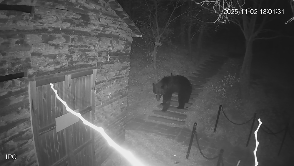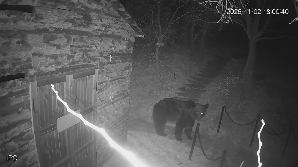 11月2日18时许,黑龙江省同江市街津口赫哲族乡北山景区保安谷某晚饭后听见景区监控发出警报,于是就调取发生警报的监控探头画面,监控中赫然出现一头黑熊,谷某随即向黑龙江出入境边防检查总站佳木斯边境管理支队街津口边境派出所报警。