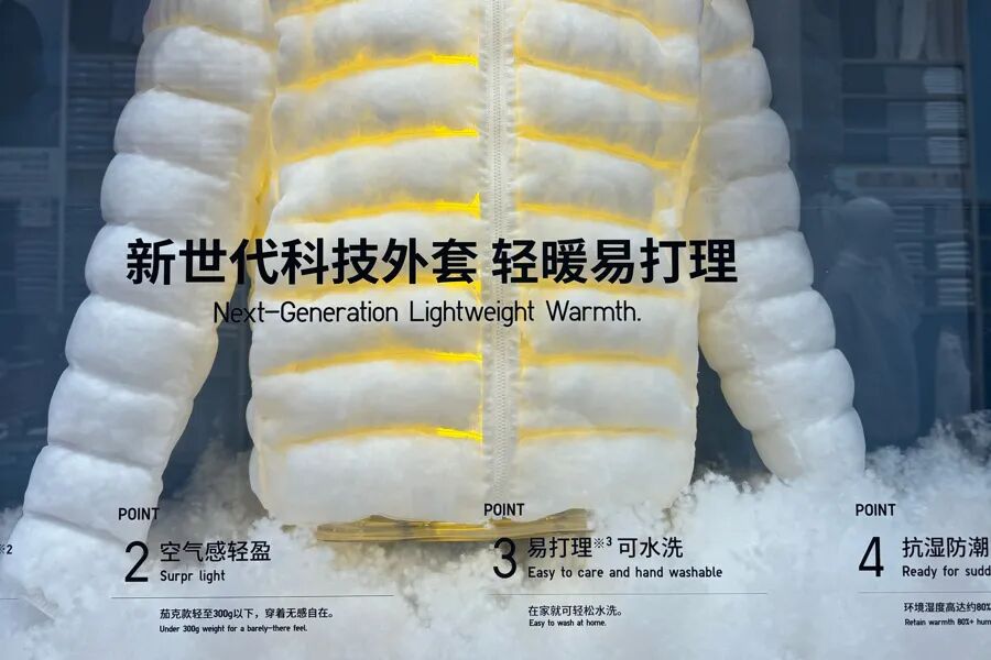 面料科技带来了很多新的填充材料,在吸取羽绒优点的同时,又解决了羽绒的痛点(作者 摄)