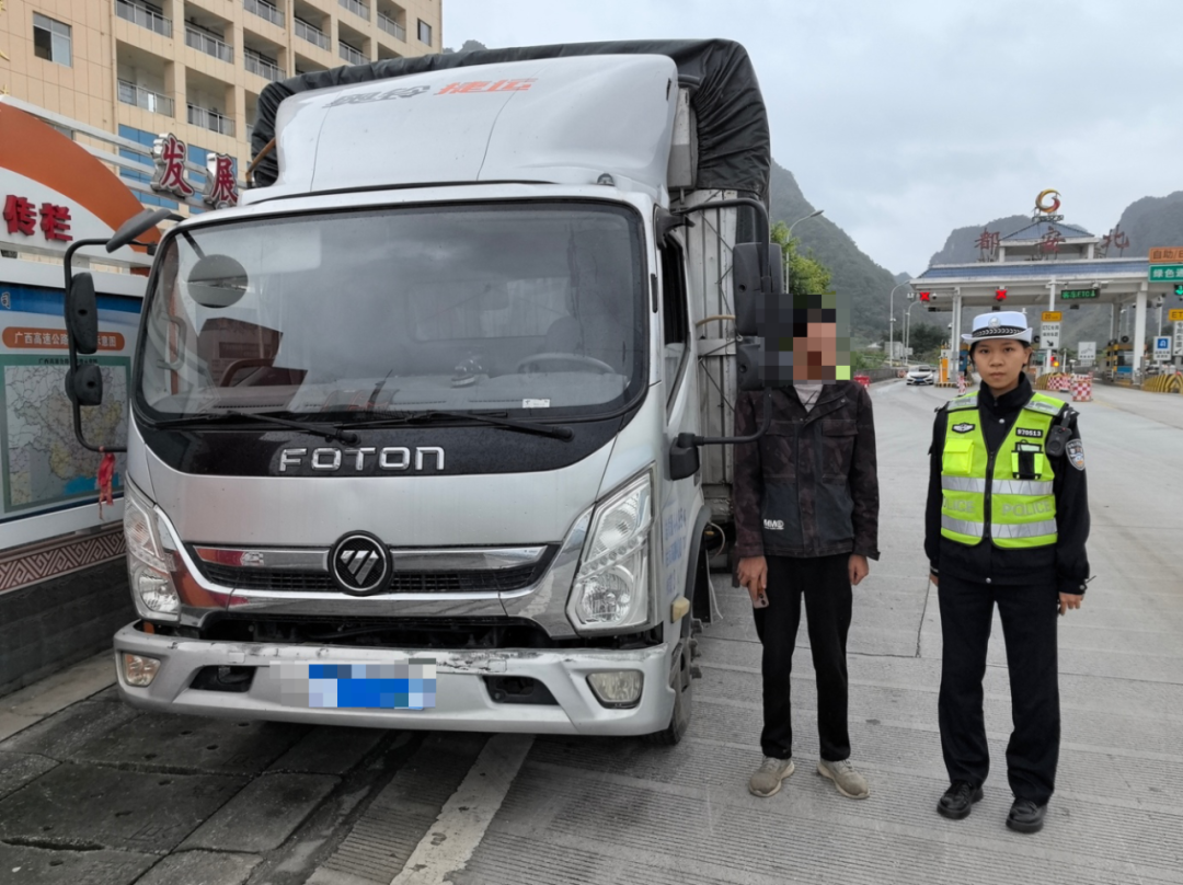 当日,河池市公安局交管支队高速公路管理二大队民警在兰海高速都安北收费站执勤时,一辆轻型仓栅式货车缓缓驶来,民警依法将其拦停检查。