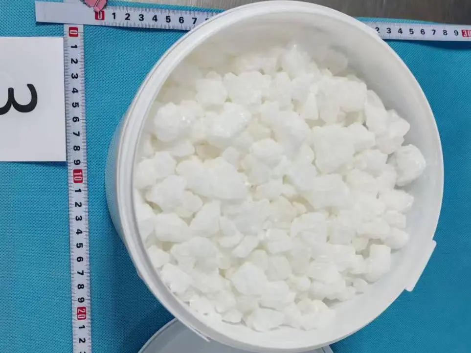 广州海关所属广州白云机场海关关员在对一批转运快件进行监管时,发现一票申报为“调理剂和抗静电剂”的快件机检图像异常。现场关员立即开展进一步查验,发现快件内共有5个白色的小塑料桶,桶内均装有不规则白色颗粒物。经送技术机构鉴定,在该批白色颗粒物中检出氯胺酮成分,重10千克。氯胺酮俗称“K粉”,具有致幻成瘾性,滥用会导致脑损伤及呼吸抑制。