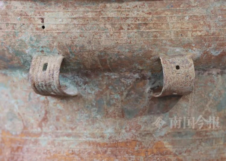 铜鼓侧面的环耳。通讯员汤晓逵 摄