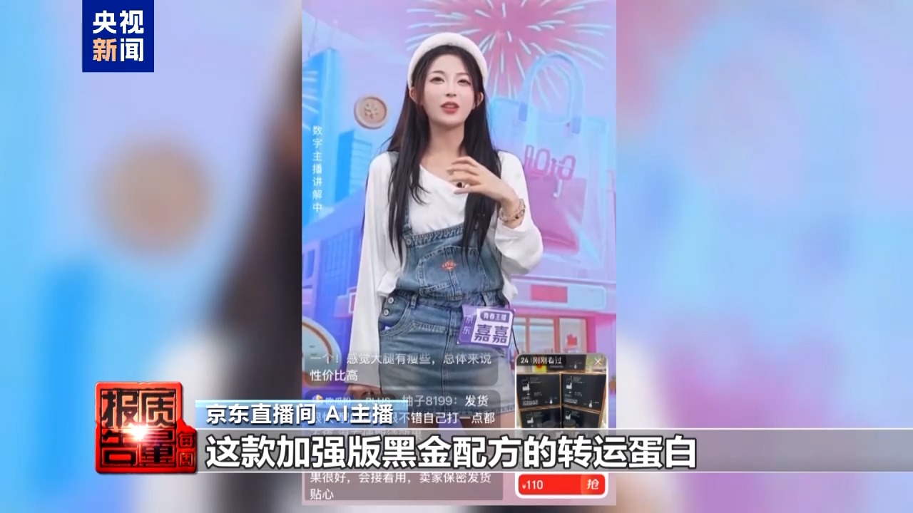 在京东直播间,AI主播称他们卖的“黑金转运蛋白”,操作简单,想美就美。