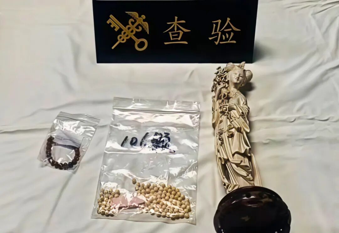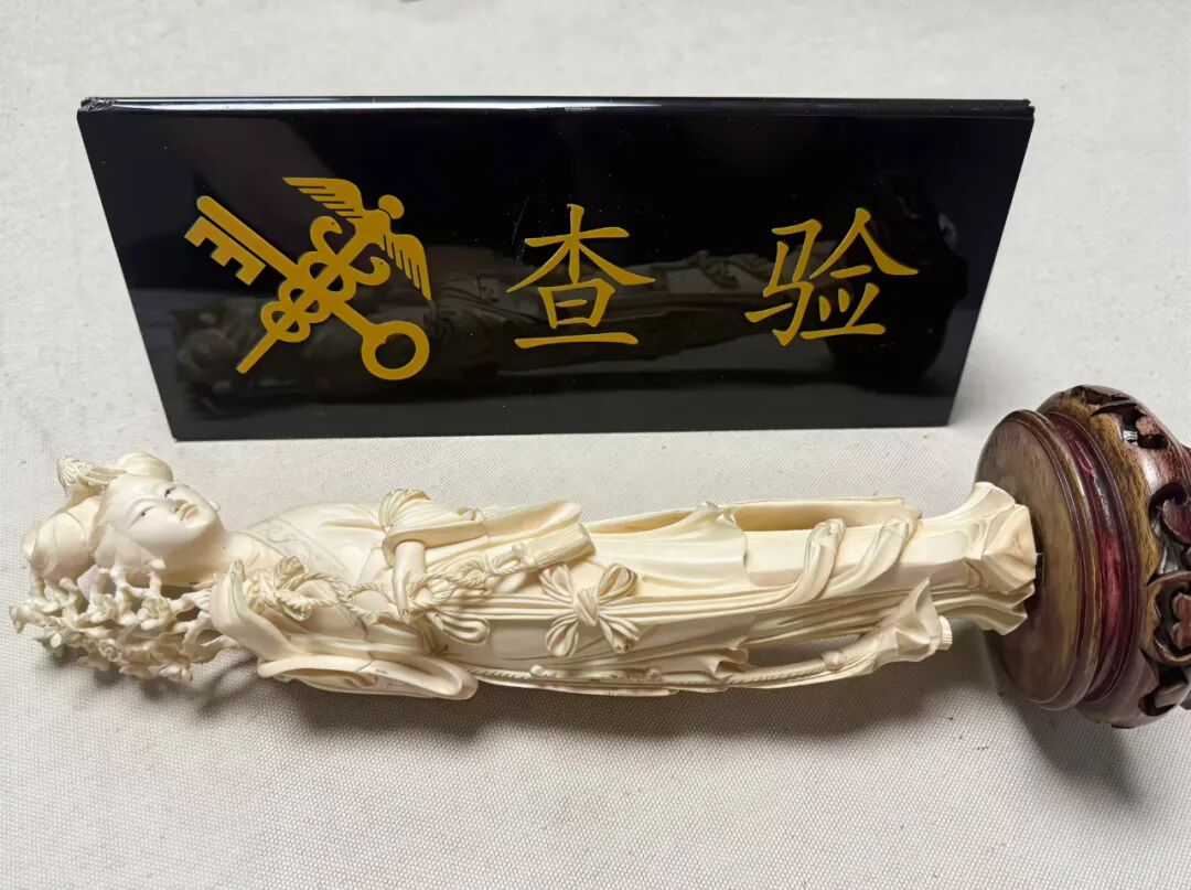 经专业机构鉴定,2件物品均为现生象牙制品,重量共计1.47千克。目前,该案件已移交海关缉私部门处置。
