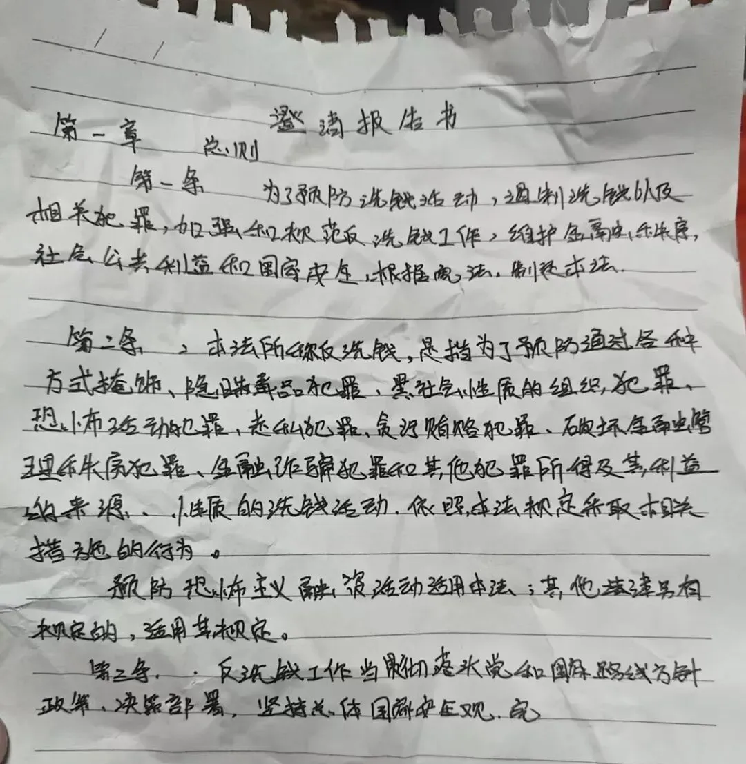 在对方一系列操作之后,小李很快相信了对方就是真正的“警察”,也相信了对方所说的自己涉嫌了一起洗钱案,并按照对方的要求,写下了一封所谓的“澄清报告书”。