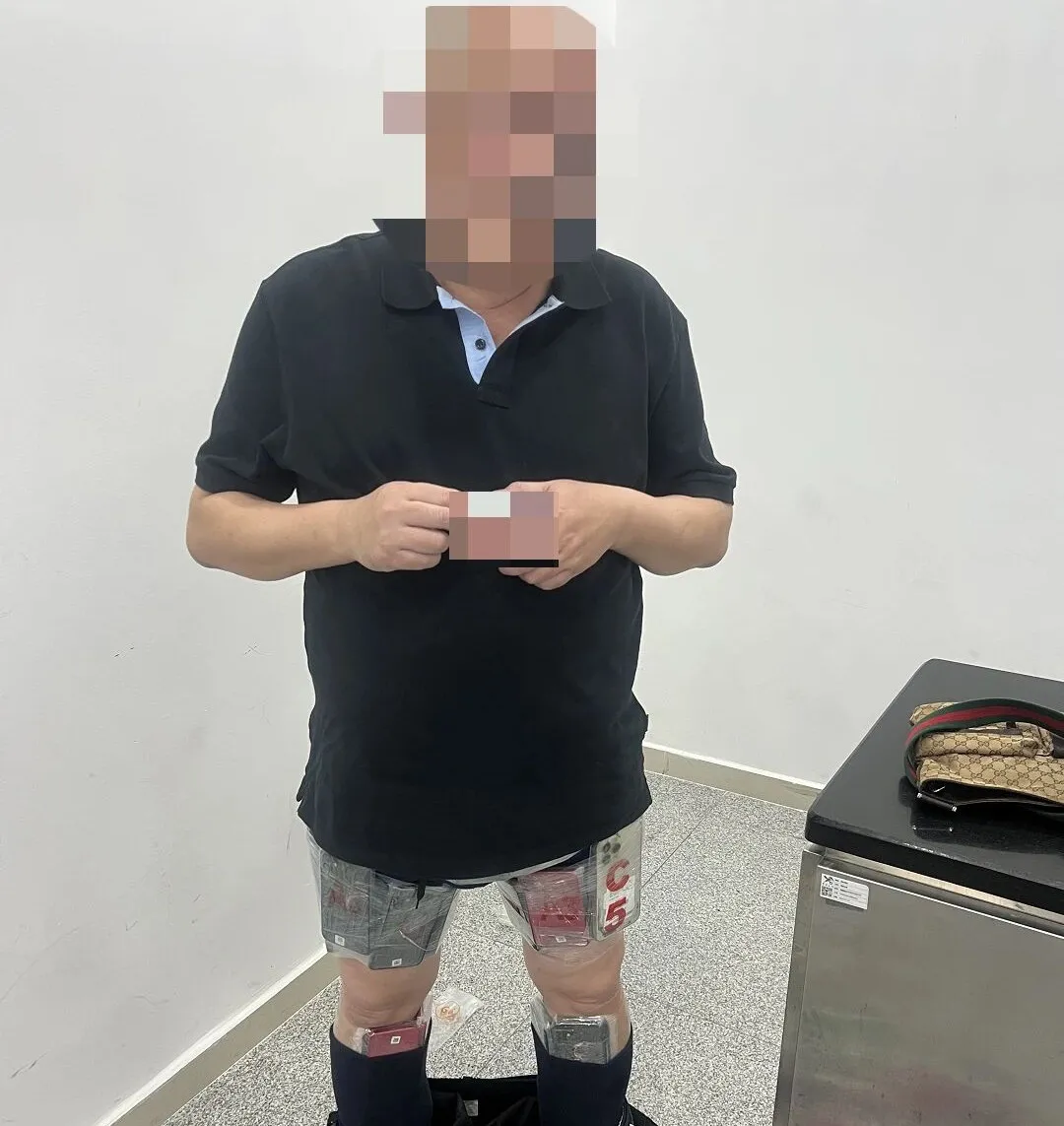 11月25日,一男子人身绑藏70台旧手机经拱北口岸走私进境,被海关当场查获。