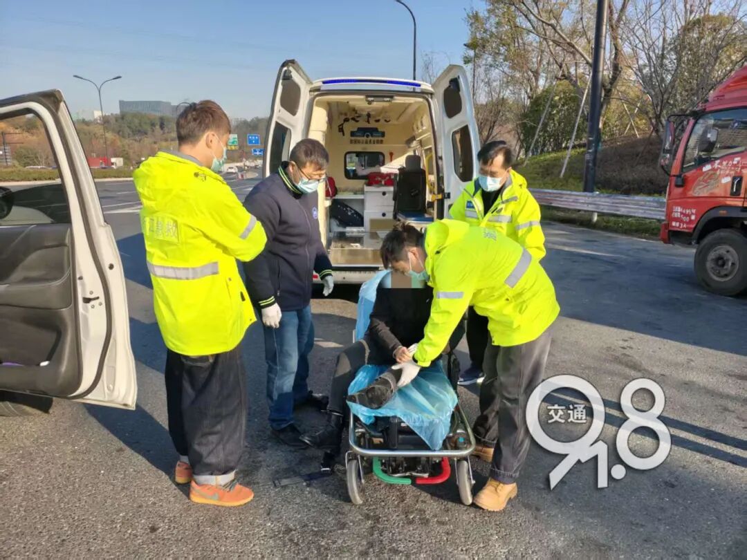为尽快检查驾驶员伤情,陈海鹏将事故车辆处置工作移交施救人员,自己则驾驶警车,载上事故车驾驶员,一路警笛长鸣、警灯闪烁,将其紧急送往最近的余杭收费站。