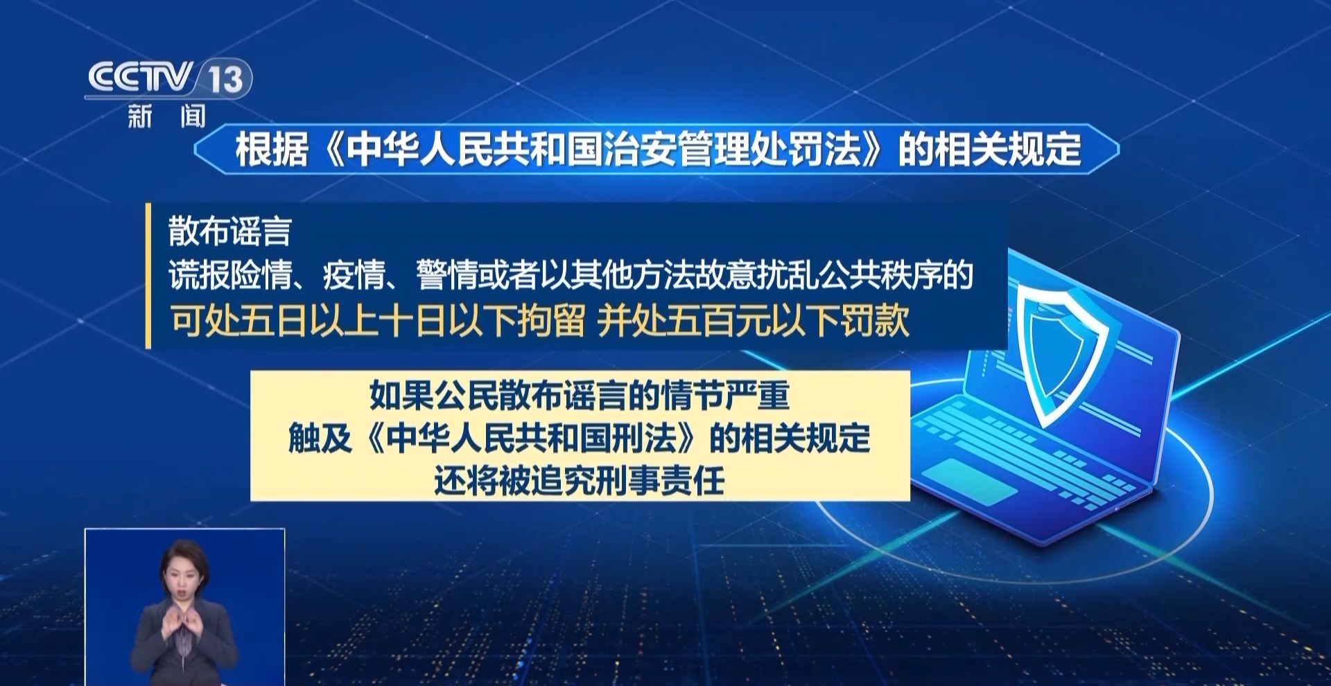 专家介绍,根据《中华人民共和国治安管理处罚法》的相关规定,散布谣言,谎报险情、疫情、警情或者以其他方法故意扰乱公共秩序的,可处五日以上十日以下拘留,并处五百元以下罚款。如果公民散布谣言的情节严重,触及《中华人民共和国刑法》的相关规定,还将被追究刑事责任。
