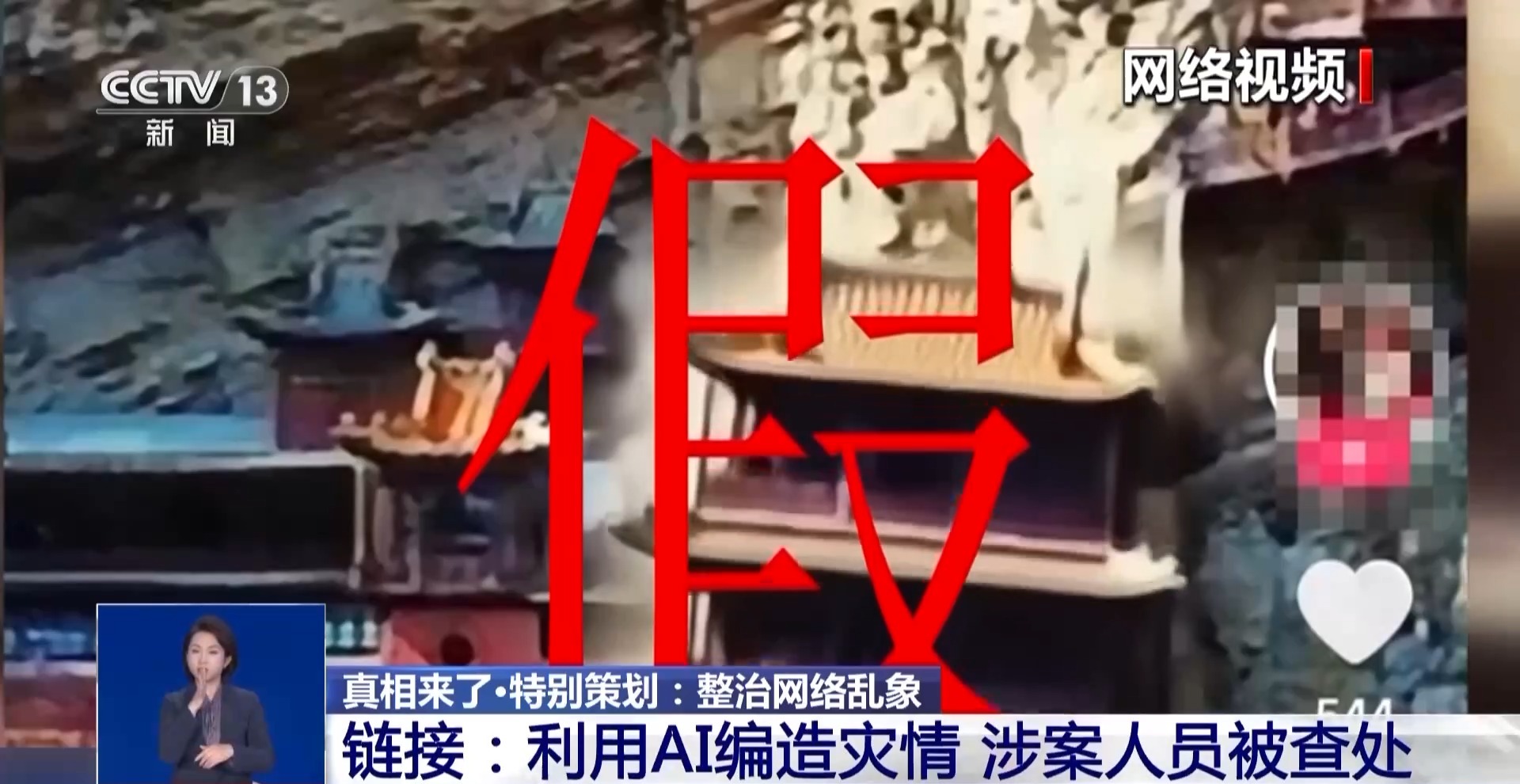 今年6月,一段关于“山西悬空寺部分建筑物坍塌”的视频在网络上传播,引发公众关注和担忧。后经当地警方调查发现,这是一条由三名外地网民利用AI技术编造的虚假视频,目的同样是为了吸引流量,博人眼球。