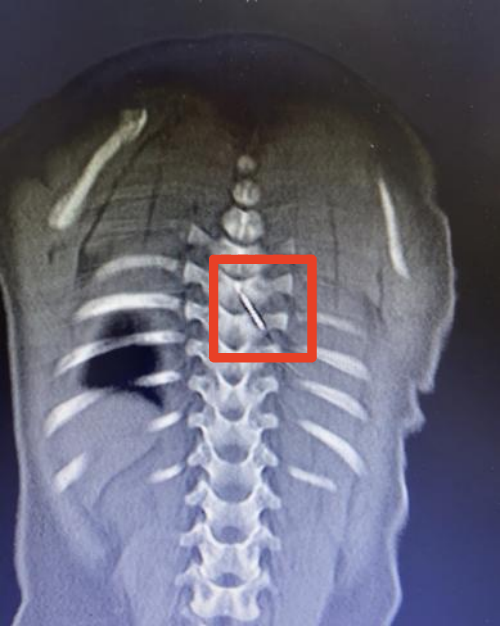 12月5日深夜,仅9个月大的男婴琪琪(化名)被紧急送往国家儿童区域医疗中心、安徽省儿童医院救治。原来,一根长约3厘米的缝衣针裹在被子里,竟在孩子睡觉时悄悄“钻”进了他的后背,并随着身体移动不断深入,最终扎入了琪琪的脊柱内,紧贴脊髓的危险区域。