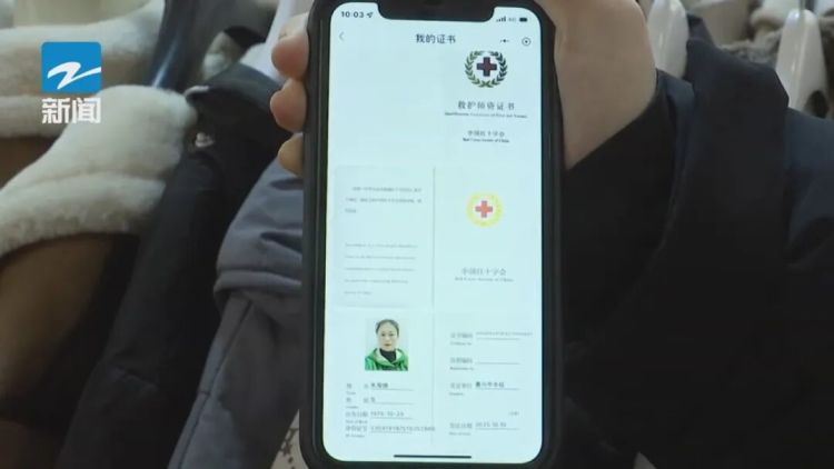 朱海娟今年50岁,在皮革城经营着一家店铺。热心的她还是海宁海豹救援队的队员,拥有中国红十字会颁发的救护师资证书。在救援队中,她的主要任务便是救护培训。除了培训新队员外,朱海娟还走进学校、社区,为老人、儿童等危险多发群体传授急救知识。