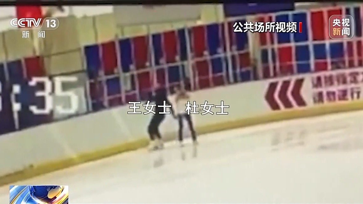 北京一家室内冰场的公共场所视频显示,事发当天下午两点半左右,王女士正在贴着场边缓慢滑行。正当她沿着冰场边缘缓慢滑行的时候,突然被撞了一下。碰撞发生后,杜女士立刻去扶摔倒在地的王女士,王女士认为自己的手腕受伤了,应当去医院。
