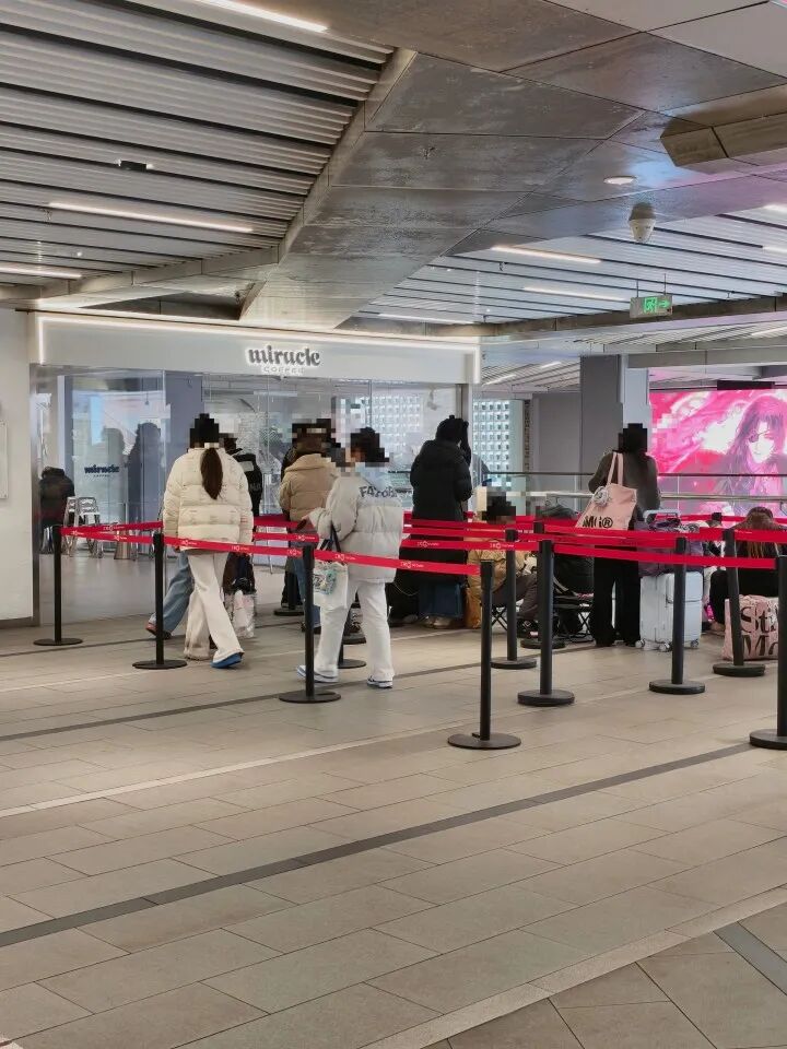 另一位年轻男生是和朋友一起来的,他们拿到的号比较晚,点了杯奶茶在旁边等,“我们都是JJ的粉丝,说实话我觉得品牌应该搞个粉丝测试才能拿号的门槛,或者积分兑换名额,不然黄牛太多了,刚才我碰到黄牛卖号,现场号都要400元一个。”