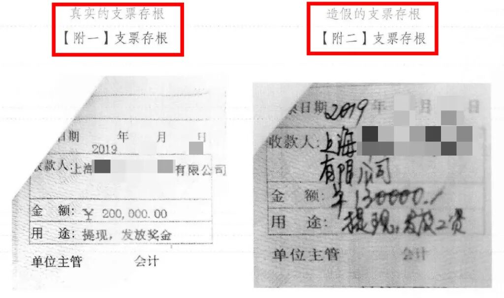 陶某利用“阴阳支票”套取公款。上海市普陀区检察院供图