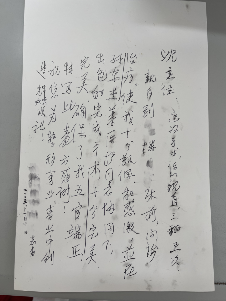 术后,齐大爷恢复良好,定期随访中未见复发迹象。前不久,他特地带着一封手写的感谢信,到科室表达自己的感激之情。“不仅病治好了,耳朵也没变形,太感谢各位医生了!”