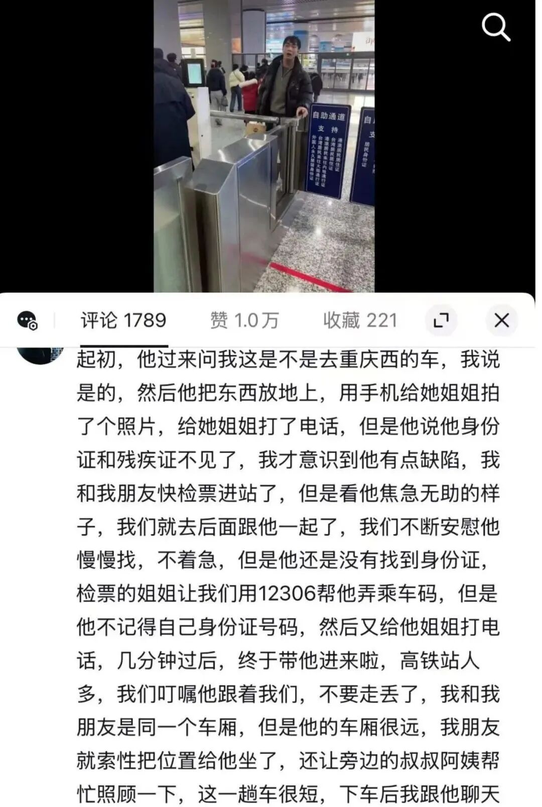 对方因丢失身份证无法进站