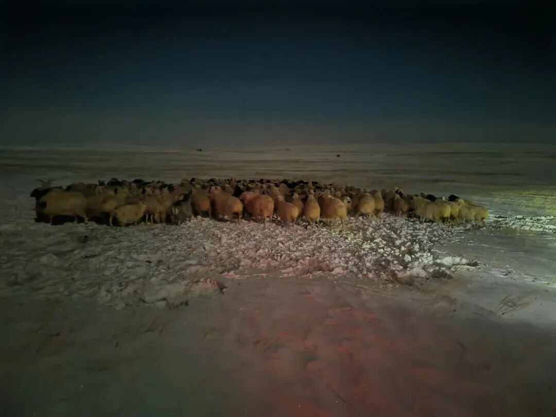 “看,那边有白影!”次日凌晨2时11分,晨光突然指向风雪深处。三人立刻停车,踩着齐膝的积雪深一脚浅一脚地向那片隐约蠕动的白色靠近。只见300多只羔羊挤作一团,在风雪中瑟瑟发抖。