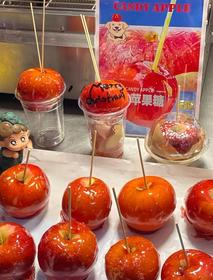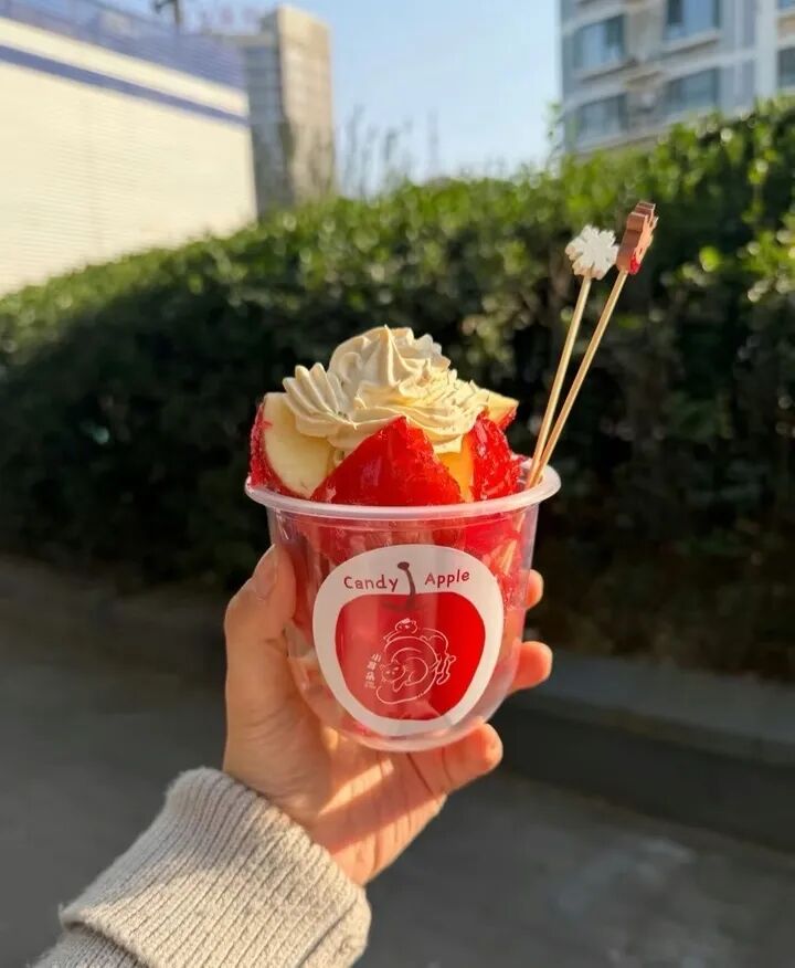 苹果系列甜品的火爆并非孤例。早在2020年之后,借助短视频平台的传播助力,手工制作苹果甜品的过程因视觉冲击力强、兼具观赏性与治愈感,被大量创作者拍摄分享。尤其是秋冬季节的庙会、文旅街区场景中,苹果类甜品制作摊位成为热门打卡点,热度持续至今。