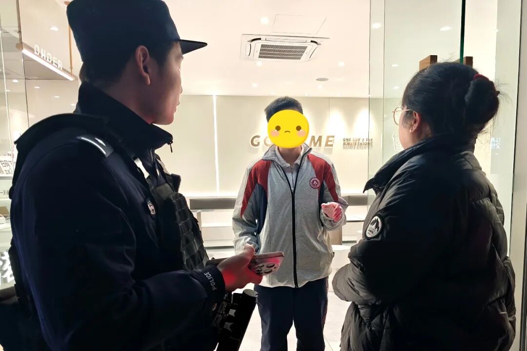 当民警将物品交还到少年手中时