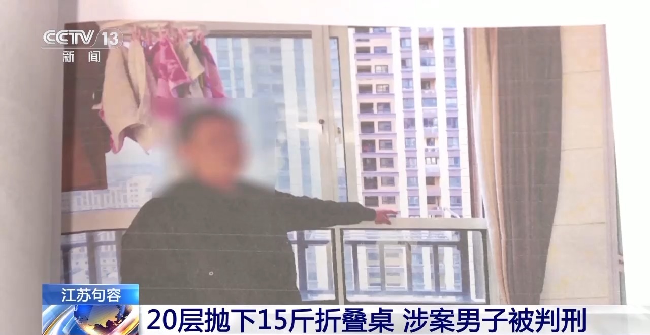 句容市人民法院刑庭副庭长 奚俊杰:经过公安机关测量,被扔下的包裹是硬质的折叠书桌。将近50米高的地方落下一个将近重达15斤的东西,如果真的砸到人,无异于一颗高空炸弹。