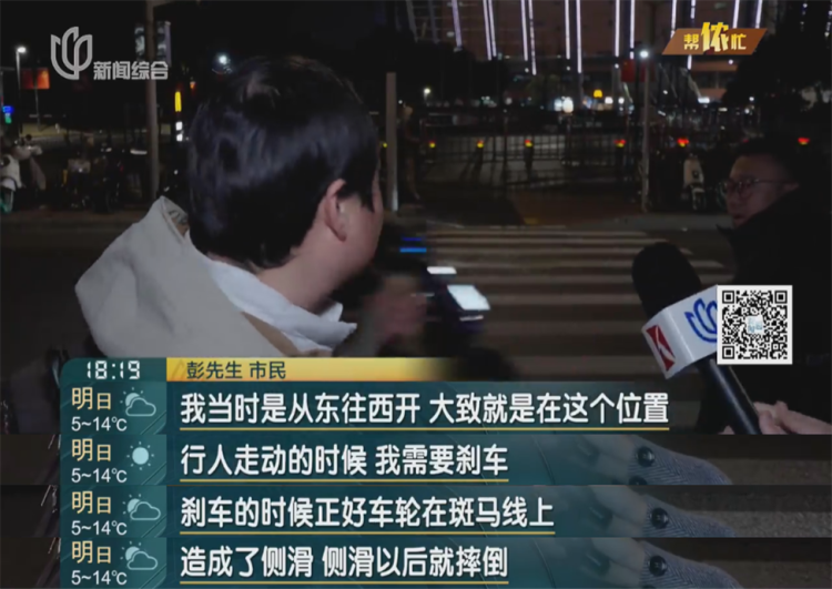 又一位市民在斑马线上滑倒