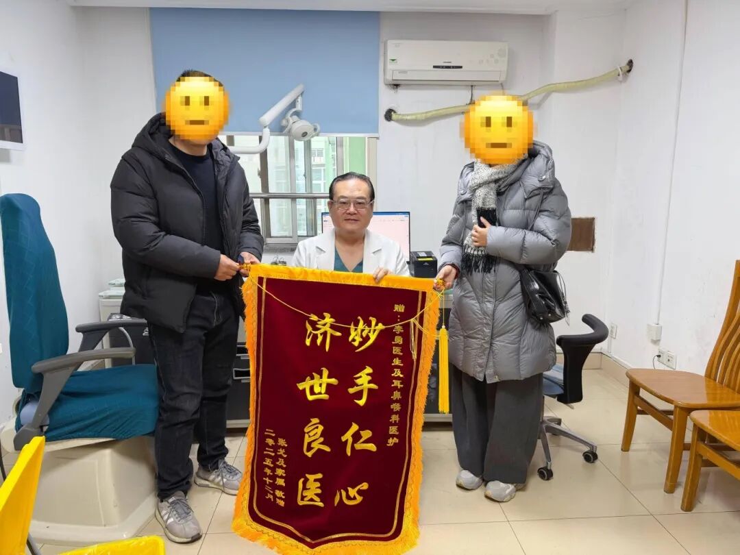 近日,西湖大学医学院附属杭州市第一人民医院耳鼻咽喉科诊室里,41岁的付先生(化名)紧紧握着李勇主任医师的手,将一面写有“妙手仁心济世良医”的锦旗郑重递上。