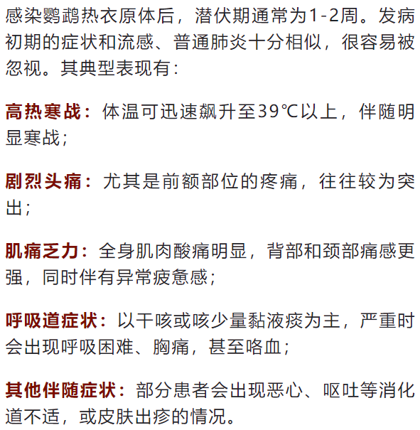 次要途径:通过破损的皮肤接触感染鸟类,或被病鸟啄伤。重要提示:人际间传播极为罕见,照顾患者时通常无需过度担心被传染。
