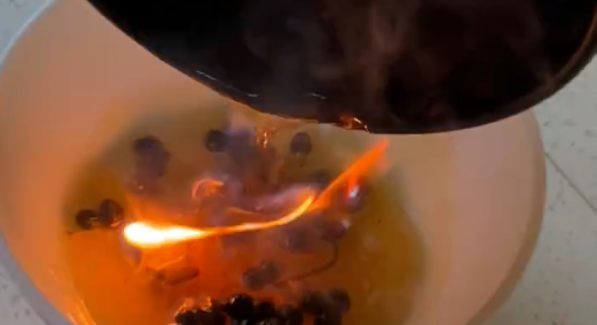 天津一女士在家炸花椒油时,油锅高温后突然起火,因操作不当,她将热油倒入碗中,碗无法承受瞬间的高温与冲击当场破裂,导致热油飞溅,上演“碗炸油溅”的惊险场面。