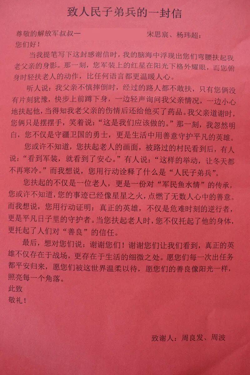 送到分队长宋思宸和班长杨玮超手中