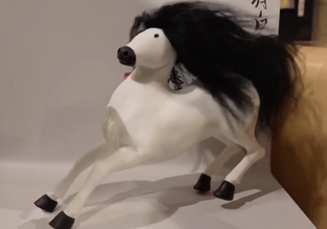 据设计者小虾米软陶艺术馆负责人王芝介绍,“马彪彪”的原型来自齐白石晚年画的奔马图《如此千里》,一共有八款不同造型,它的头发用的是仿真毛发,可以自行给小马编小辫儿。