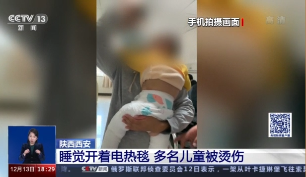 陕西西安,一名一岁三个月的男童,因晚上睡觉时电热毯一直开着,又没穿尿不湿,导致腰部、双下肢均被二度烫伤。