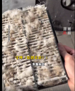 这时候,一辆SUV撞到了这包羽毛,大量的羽毛瞬间四散开来,“到服务区,我们徒手在机舱里,薅了半个多小时的羽毛”。