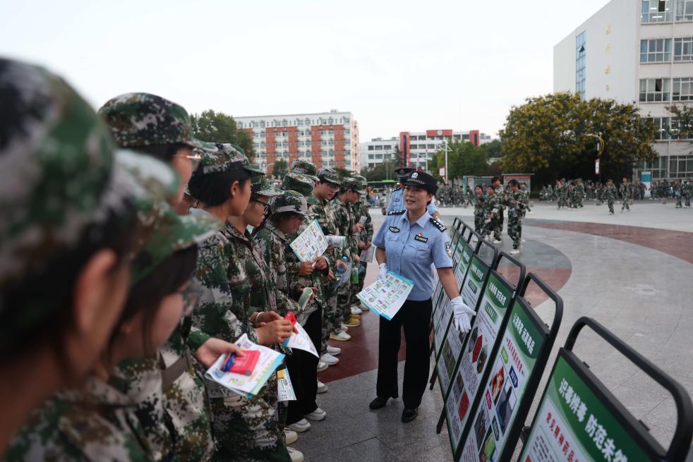 2025年9月15日,王妙丽(右一)在漯河职业技术学院教学生们分辨毒品。新华社发