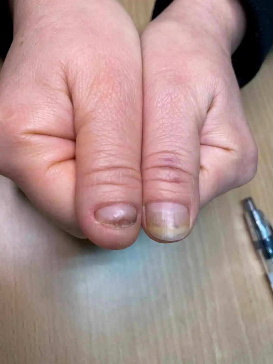 “我们见过最严重的案例,是在一次外力撞击下,因指甲下方结构早已被破坏,整片指甲被掀翻翘起,甲床暴露,剧痛难忍——十指连心,那种痛苦堪比酷刑。”所幸该患者未发生全身感染,但恢复过程漫长且指甲可能永久变形。