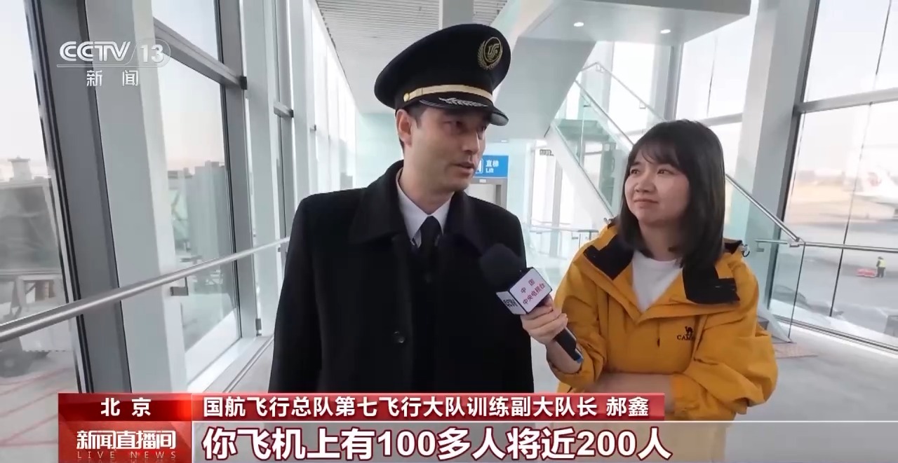 国航飞行总队第七飞行大队训练副大队长 郝鑫:因为你会想到,飞机上有100多人将近200人,也就是说100多个家庭甚至200个家庭,他们能够在春节的时候,和家人一起共度新春,你会替他们感到高兴。